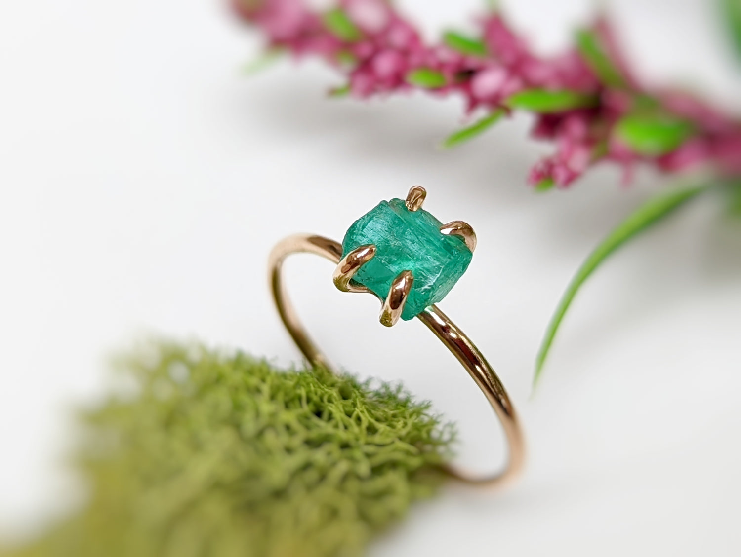En tant que pierre de naissance du mois de mai, l’émeraude symbolise la promesse de nouveaux départs et la joie du printemps. Chacune de nos émeraudes brutes est unique, avec ses imperfections et inclusions – et sera transformée en un bijou unique en son genre.