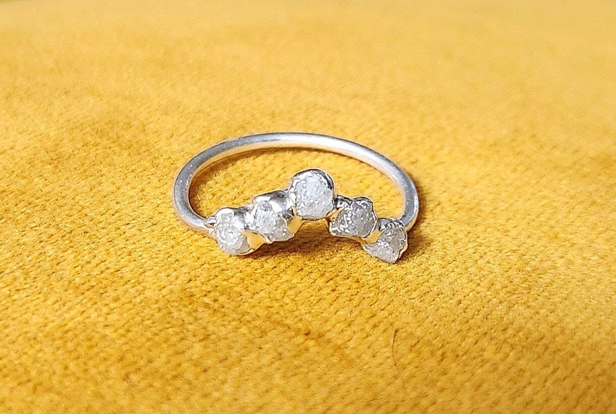 Unleash your love's raw beauty! Our ethically sourced raw uncut diamond Chevron engagement ring will be uniquely handcrafted in your choice of Fine Silver or 18k Gold. Say 'I do' with a ring as unique as your love story.