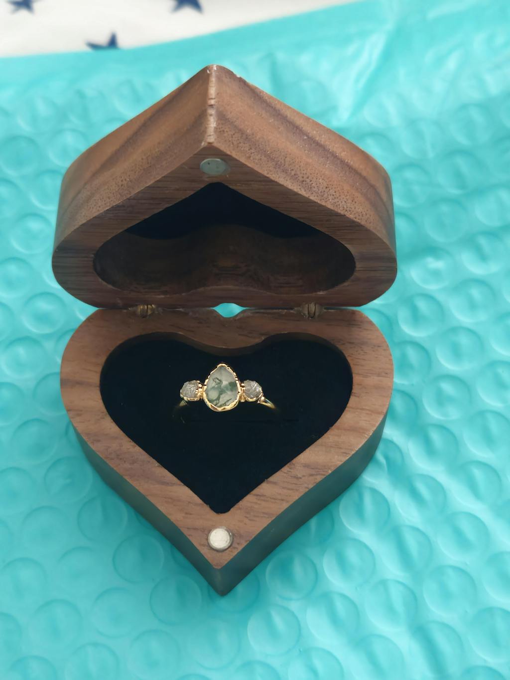 Every moss agate stone is different and Dominique really put thought into sourcing a gorgeous one for this ring.